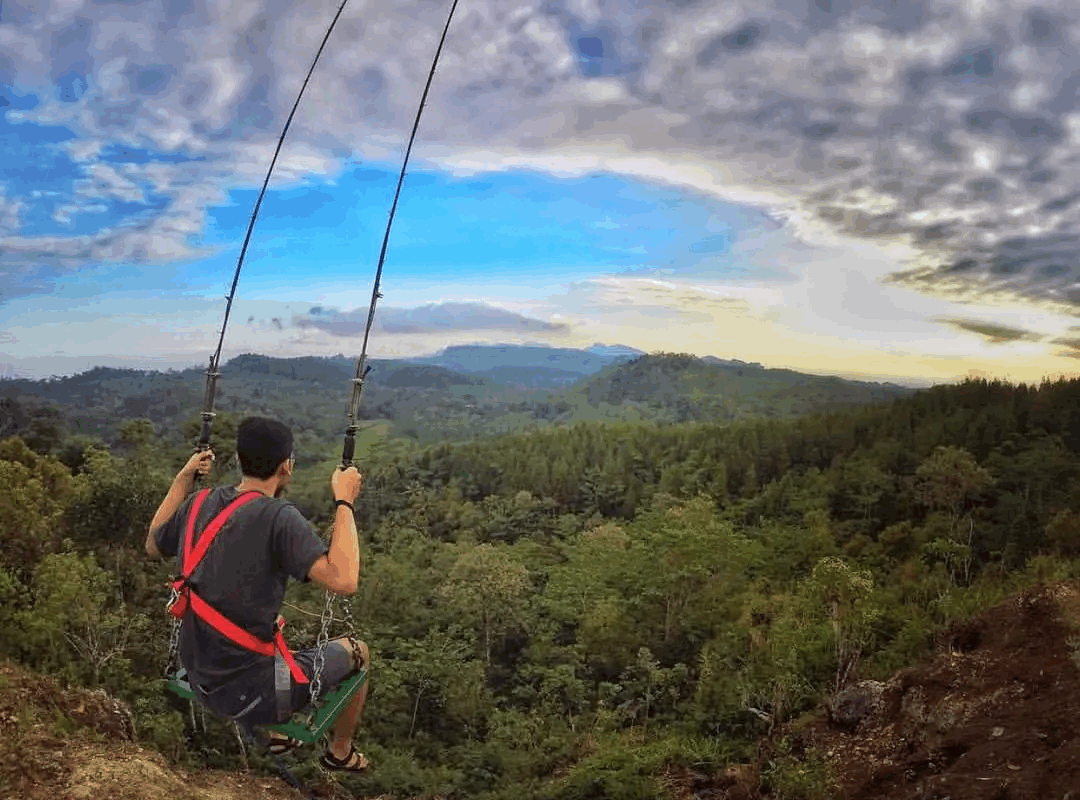 Saat pengunjung meluncur, mereka disambut dengan angin sejuk, desiran daun, dan pemandangan panoramis dari bukit hijau, lembah, dan cakrawala yang jauh. Ayunan ini terpasang dengan aman, memastikan keselamatan peserta saat mereka menikmati sensasi adrenalin dan perasaan terbang di angkasa.